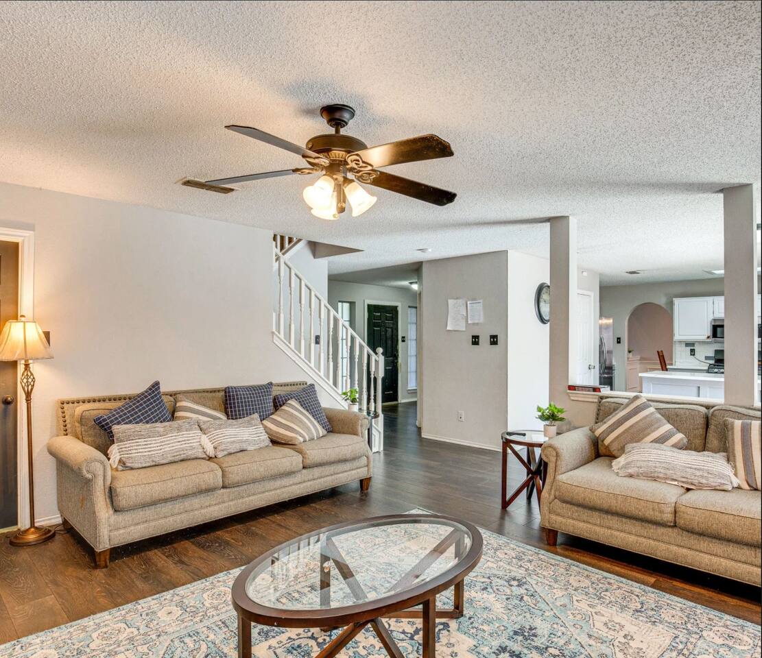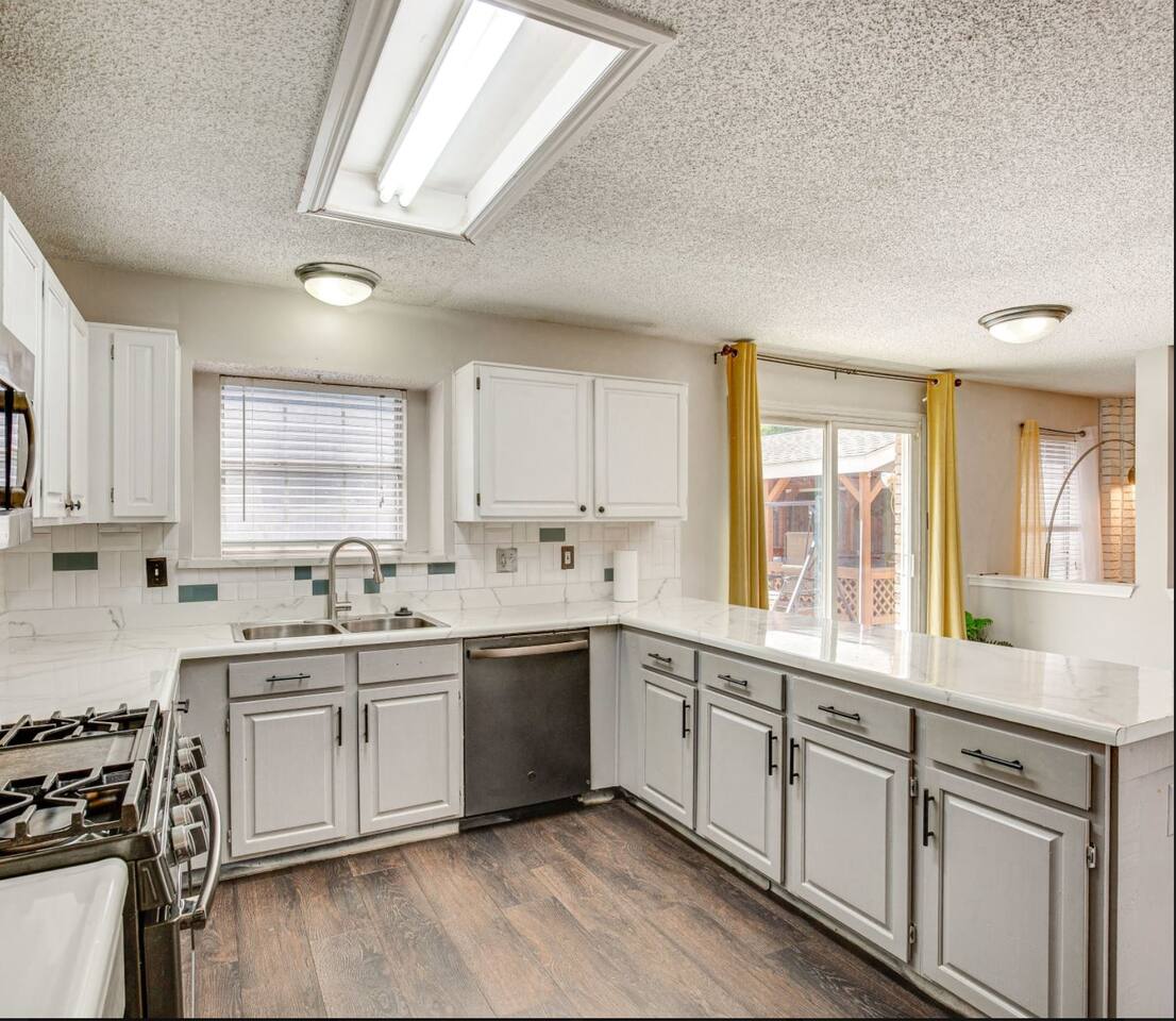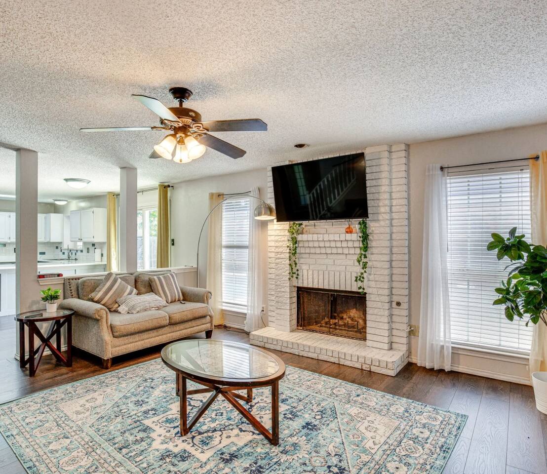 This inviting home in the heart of Grand Prairie TX is a short drive to the Dallas Cowboys and Texas Rangers stadiums. In a short drive you'll find Water Parks, Six Flags over Texas, Shopping, and Restaurants. Ideal for families, sports fans, and travelers on vacation or business looking for a home base near major attractions. The prime location coupled with the swimming pool and Cozy beds make this home the perfect balance of convenience and comfort. Our outdoor space is designed for relaxation and fun! Take a swim in the pool and enjoy the Gazebo where you'll find plenty of seating to unwind. Fire up the BBQ grill for a cookout on our grill.
