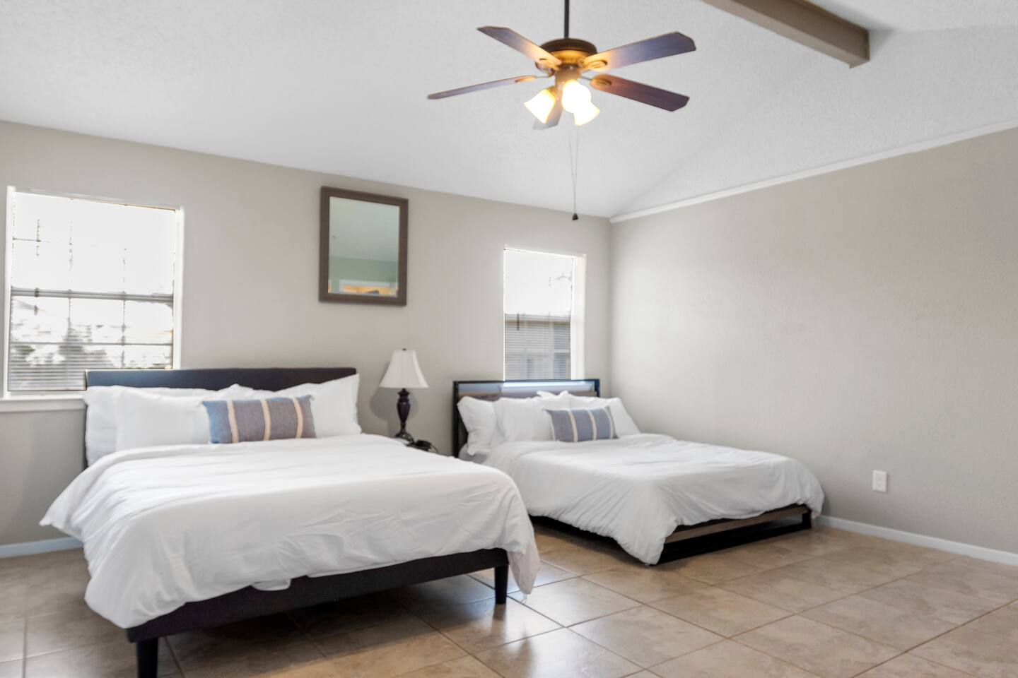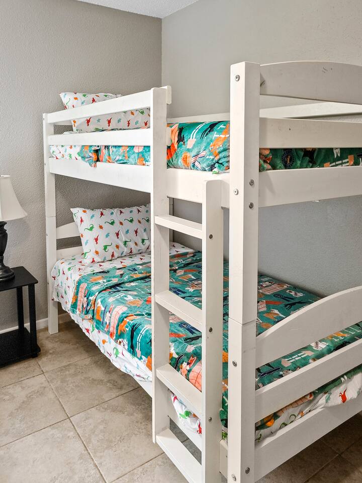 Our home is a 3 bedroom with a office style room that has a sofa couch that makes out into a bed, you'll find linings, pillows, and a blanket located in the closest beside the couch. The master bedroom has (2) Queen cozy beds, attached to the bedroom you'll find a restroom with a shower with all your shower needs. The second bedroom has a King Cozy bed along with a baby crib for your little ones. The third bedroom has a set of Queen Cozy bunk beds and a set of Twin Cozy bunk beds . Enjoy some time in the open living room and enjoy cooking in the open kitchen. In the garage you'll find a Game Room with a pool table, foosball table, and a dart board. There is also board games located on the shelve that you are welcome to enjoy.