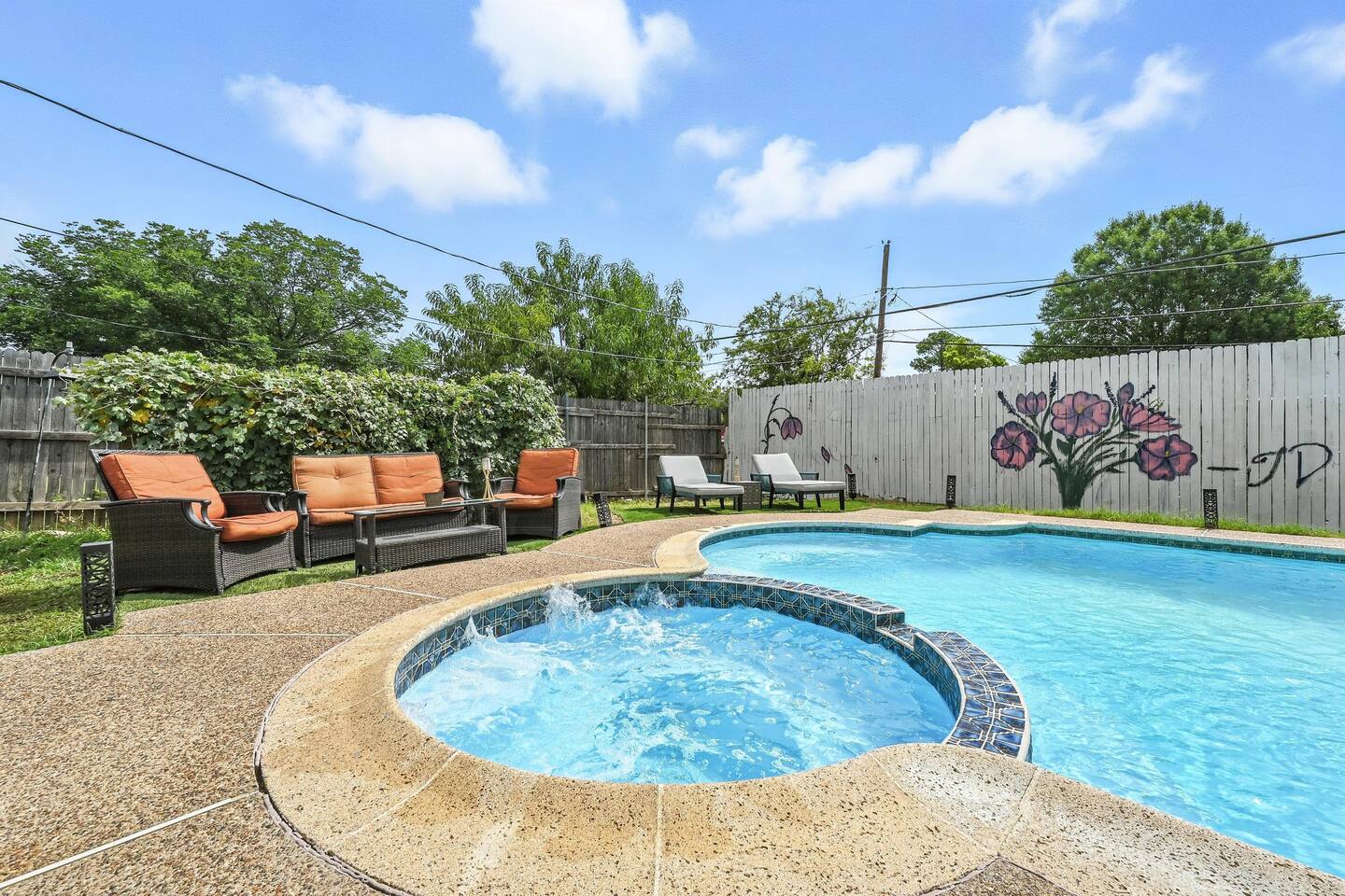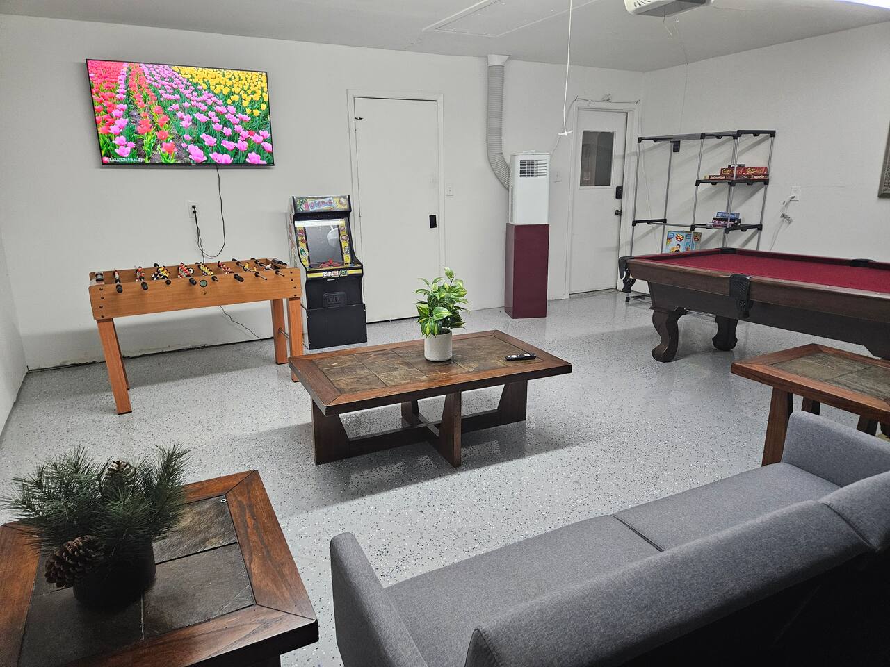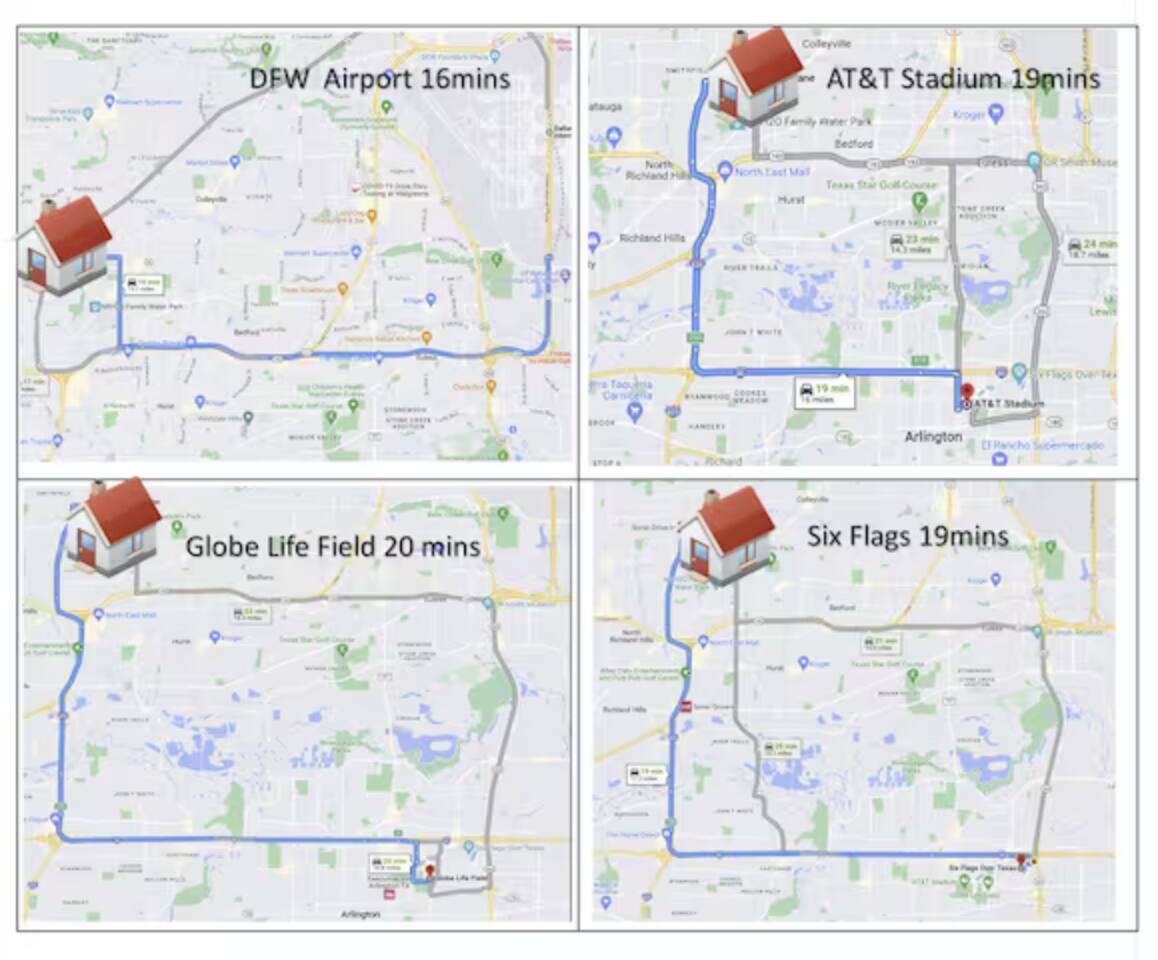 Welcome to your private two‑home retreat—ideal for families, friends, and multi‑generational trips. Book both houses together for one price for the space and privacy you want, then gather in the shared outdoor area for meals, games, and relaxed evenings. The location puts you close to center of DFW, while quiet, residential vibes make it easy to unwind after a day out. What you’ll love Two fully private homes booked as one stay—plenty of room to spread out Comfortable living rooms and well‑equipped kitchens for home‑cooked meals Hotel‑quality linens, thoughtfully stocked essentials, and reliable Wi‑Fi Shared outdoor space for dining, grilling, and morning coffee Driveway/onsite parking and easy, keyless self check‑in Close to DFW airport, AT&T Stadium, Six Flags and other major attractions The space Each house offers its own living room, kitchen, bedrooms, and bathroom(s), so everyone gets personal space without sacrificing convenience. Natural light, comfortable furnishings, and a clean, modern look make it easy to settle in—whether you’re planning a long weekend or an extended stay. Kitchens are set up for real cooking with the essentials you’d expect, and smart TVs let you log into your favorite streaming apps. Sleeping arrangements Flexible layouts work well for couples, kids, and remote work. If you share bed sizes and room counts, One of the houses got a private pool and it has 3 bed rooms and 2 bath rooms. The other house has 4 bedroom and 2 bathroom. We have sleeping arrangements for up to 25 people in both the houses together. Pool House Bed1 : 1 King Bed2 : 1 Queen, Triple twin Bunk bed Bed 3: 2 Double Non Pool house Bed1 : 1 King Bed2 : 2 queen Bed 3: 2 Queen Bunk bed, 2 Twin bunk bed Bed 4: 1Queen Sleeper sofa Both houses got additional queen Air mattress Guest access You’ll have exclusive use of both homes and the outdoor areas during your stay. Self check‑in via smart lock. Ample parking onsite. Other things to note Please observe quiet hours after 10 pm; no parties or events Exterior security cameras monitor the perimeter for safety Key Amenities Yard, grill, fire pit, pool, hot tub, Plenty of parking, Wi‑Fi, game room,