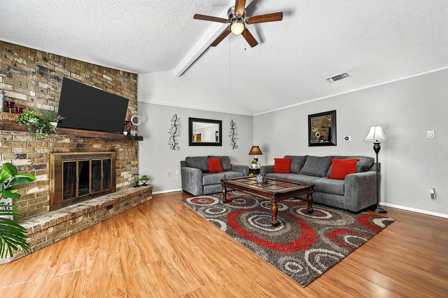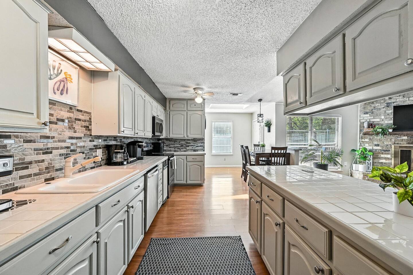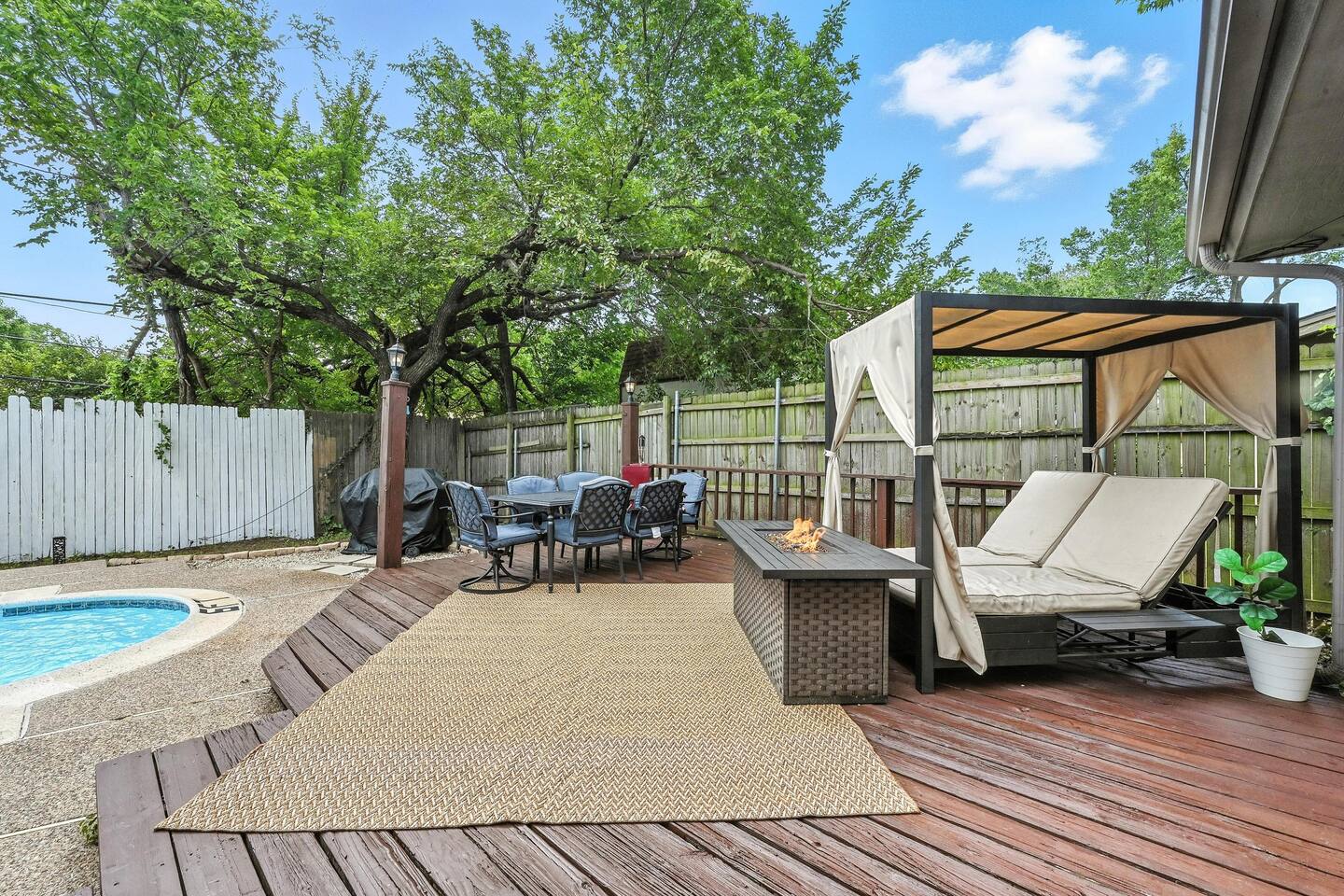 Welcome to your private two‑home retreat—ideal for families, friends, and multi‑generational trips. Book both houses together for one price for the space and privacy you want, then gather in the shared outdoor area for meals, games, and relaxed evenings. The location puts you close to center of DFW, while quiet, residential vibes make it easy to unwind after a day out. What you’ll love Two fully private homes booked as one stay—plenty of room to spread out Comfortable living rooms and well‑equipped kitchens for home‑cooked meals Hotel‑quality linens, thoughtfully stocked essentials, and reliable Wi‑Fi Shared outdoor space for dining, grilling, and morning coffee Driveway/onsite parking and easy, keyless self check‑in Close to DFW airport, AT&T Stadium, Six Flags and other major attractions The space Each house offers its own living room, kitchen, bedrooms, and bathroom(s), so everyone gets personal space without sacrificing convenience. Natural light, comfortable furnishings, and a clean, modern look make it easy to settle in—whether you’re planning a long weekend or an extended stay. Kitchens are set up for real cooking with the essentials you’d expect, and smart TVs let you log into your favorite streaming apps. Sleeping arrangements Flexible layouts work well for couples, kids, and remote work. If you share bed sizes and room counts, One of the houses got a private pool and it has 3 bed rooms and 2 bath rooms. The other house has 4 bedroom and 2 bathroom. We have sleeping arrangements for up to 25 people in both the houses together. Pool House Bed1 : 1 King Bed2 : 1 Queen, Triple twin Bunk bed Bed 3: 2 Double Non Pool house Bed1 : 1 King Bed2 : 2 queen Bed 3: 2 Queen Bunk bed, 2 Twin bunk bed Bed 4: 1Queen Sleeper sofa Both houses got additional queen Air mattress Guest access You’ll have exclusive use of both homes and the outdoor areas during your stay. Self check‑in via smart lock. Ample parking onsite. Other things to note Please observe quiet hours after 10 pm; no parties or events Exterior security cameras monitor the perimeter for safety Key Amenities Yard, grill, fire pit, pool, hot tub, Plenty of parking, Wi‑Fi, game room,